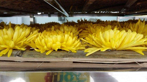 新鮮菊花含水量較高,其中花瓣部分含水量較少,組織較嫩,容易干燥,而花頭部分含水量特大,可達80%以上,且組織較老,不易失水,菊花是一種組織極不均勻的藥材。因此,遠圖菊花烘干機對芘頭部分進行強干燥,而對花瓣部分進行弱干燥。烘出的菊花色澤金黃,花香濃郁,花芯不散。
